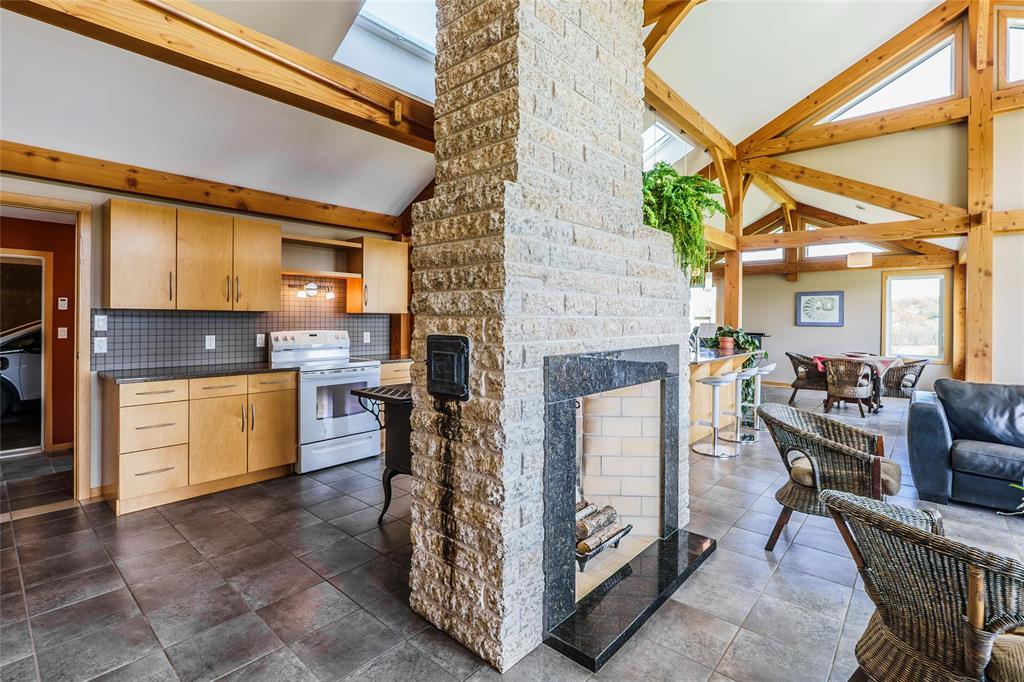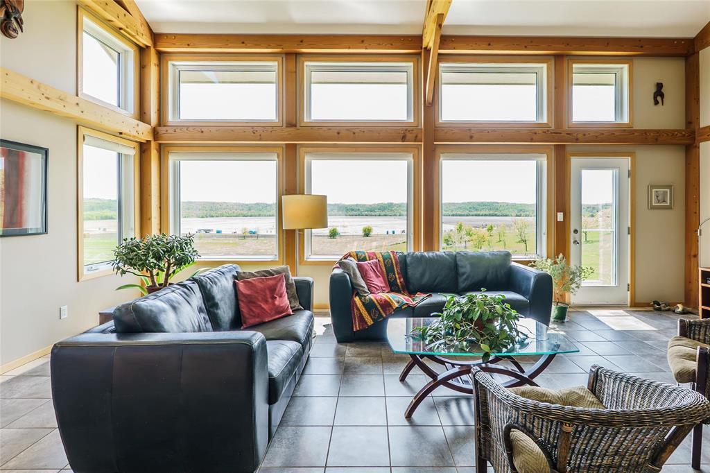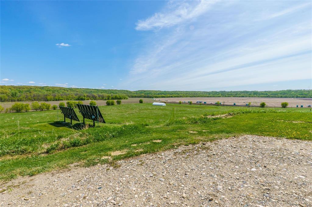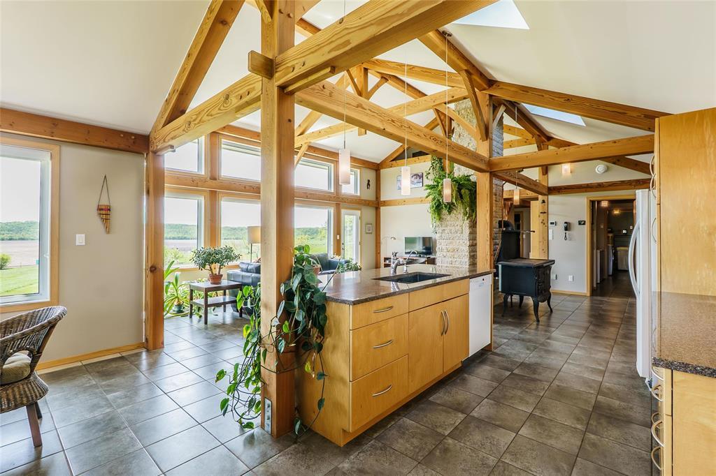 R39//Lavenham/See it today & Offers as Received *** Reduce your carbon footprint with proposed Hydro power as a backup! One-of-a-Kind waterfront Douglas Fir Timber Frame Off-grid home on nearly 96 Scenic Acres of land in the shape of a teardrop and flanked by the Assiniboine River. Perfect for a hobby farm and famous for foraging, berries and cherries, the land offers a piece of heritage - it has a lookout that gazes over the Hogsback which marries a historical significance with Chief Yellowquill. Built into the hillside and constructed with quality craftsmanship, this passive solar-designed home combines elegance and efficiency.. Open-concept layout featuring a Manitoba granite kitchen with a large island, a Rumford fireplace and panoramic valley views. With 1,958 sqft of living space in main home including 2 bedrooms (with potential division for a 3rd), and a 4-piece bath. In-floor radiant heat and A/C included! Outbuildings include a fully insulated workshop/garage/studio with bathroom and kitchenette (extra 1050 sqft of living space), and two utility buildings perfect for storage or expansion. A stone's throw away from Bittersweet Cross Country Ski Trails, this property features fully sustainable living! (id:4069)