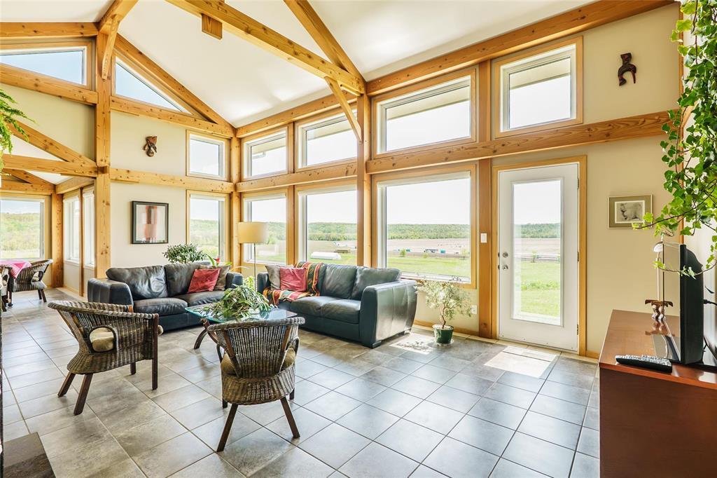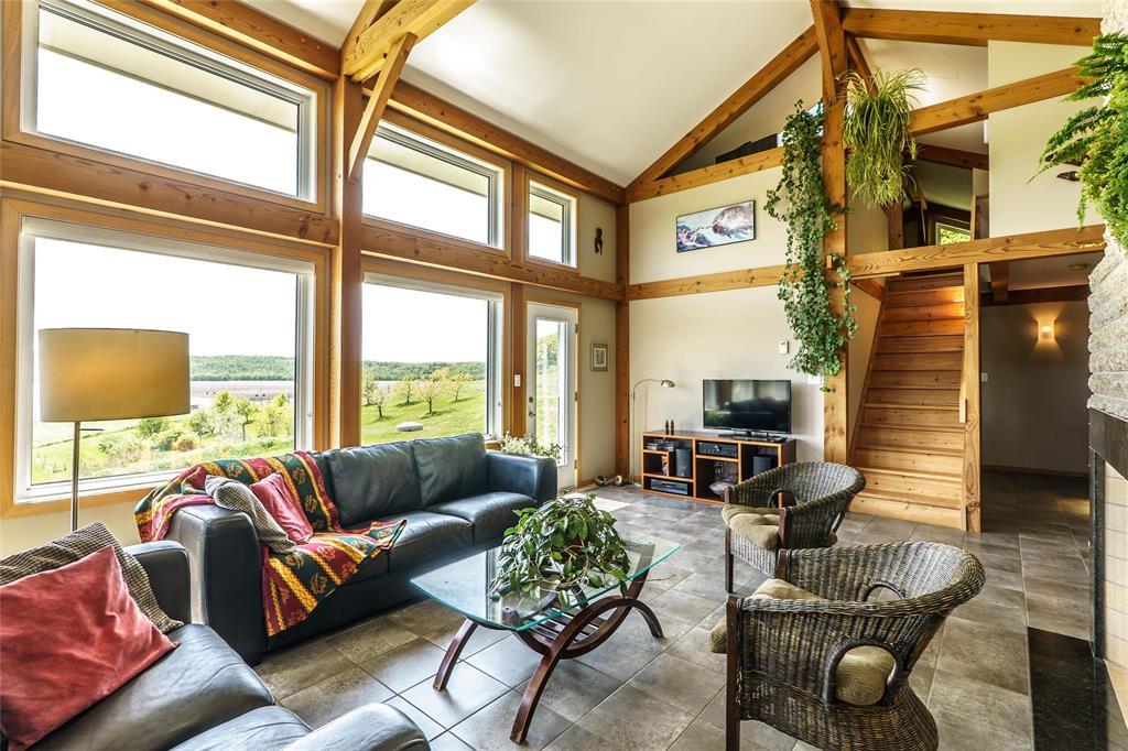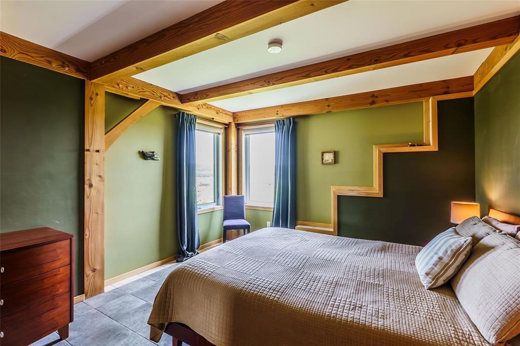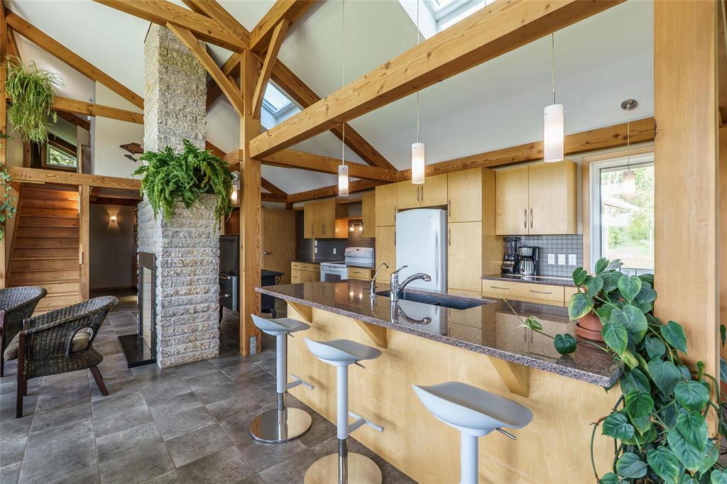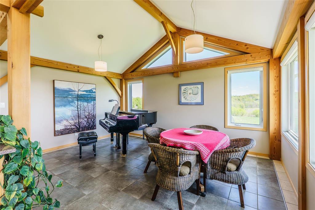 R39//Lavenham/See it today & Offers as Received *** Reduce your carbon footprint with proposed Hydro power as a backup! One-of-a-Kind waterfront Douglas Fir Timber Frame Off-grid home on nearly 96 Scenic Acres of land in the shape of a teardrop and flanked by the Assiniboine River. Perfect for a hobby farm and famous for foraging, berries and cherries, the land offers a piece of heritage - it has a lookout that gazes over the Hogsback which marries a historical significance with Chief Yellowquill. Built into the hillside and constructed with quality craftsmanship, this passive solar-designed home combines elegance and efficiency.. Open-concept layout featuring a Manitoba granite kitchen with a large island, a Rumford fireplace and panoramic valley views. With 1,958 sqft of living space in main home including 2 bedrooms (with potential division for a 3rd), and a 4-piece bath. In-floor radiant heat and A/C included! Outbuildings include a fully insulated workshop/garage/studio with bathroom and kitchenette (extra 1050 sqft of living space), and two utility buildings perfect for storage or expansion. A stone's throw away from Bittersweet Cross Country Ski Trails, this property features fully sustainable living! (id:4069)